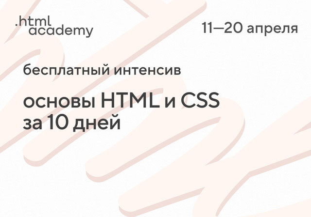 11 апреля стартует бесплатный интенсив по веб-разработке от HTML Academy, на котором вы не только познакомитесь с HTML и CSS и разберётесь с основами создания сайтов, но и попробуете себя в роли верстальщика.