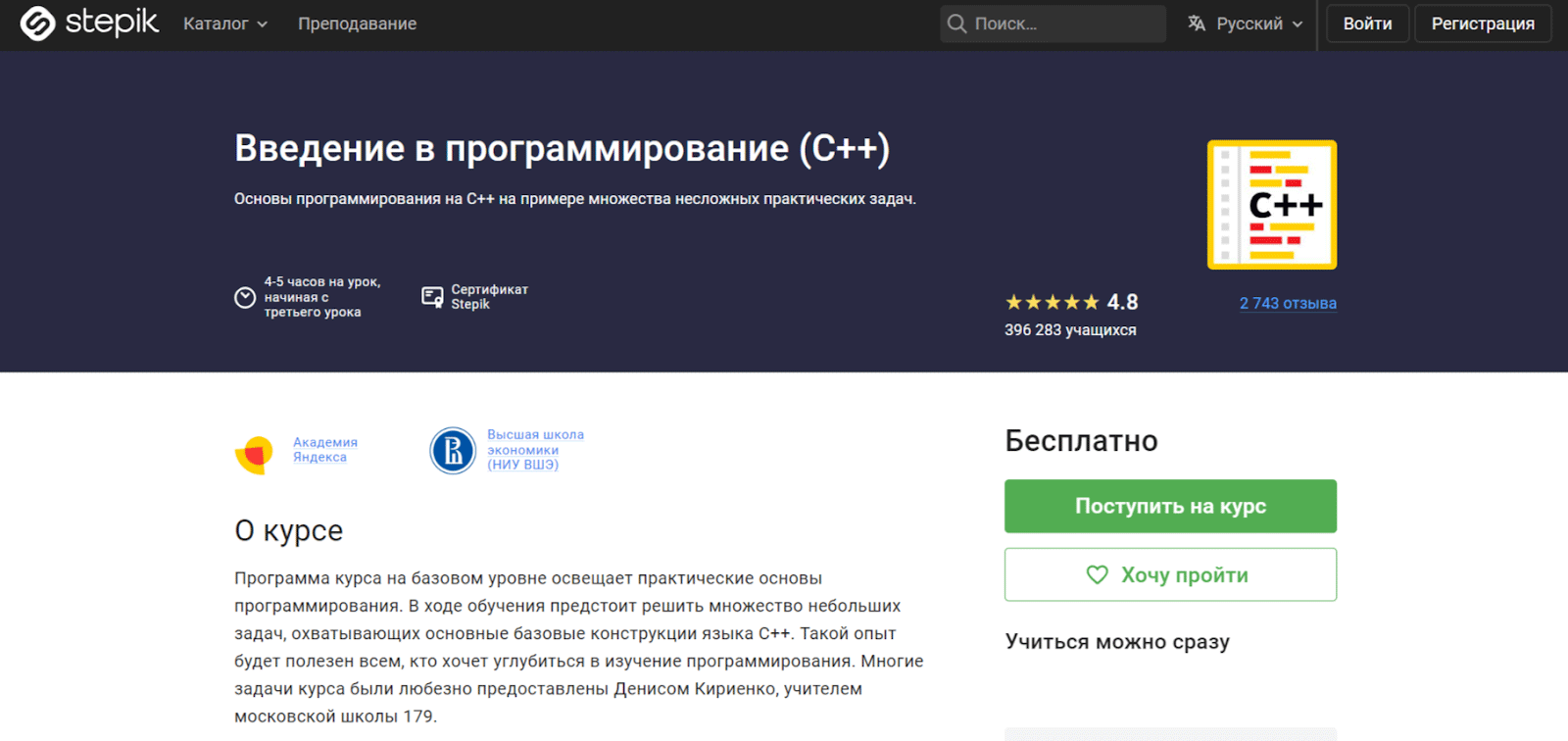 Введение в программирование (C++) | Stepik