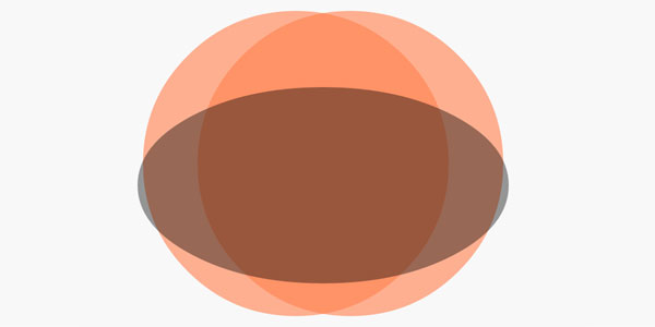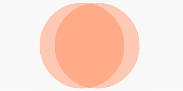 Snap.svg использует мощное оружие под именем group, которое, как следует из названия, группирует векторы вместе, делая их одной фигурой. Вы можете группировать сколько угодно фигур, добавляя их в виде списка. Давайте создадим два круга, сгруппируем их и уменьшим заливку каждого круга, чтобы было ясно видно, что происходит.