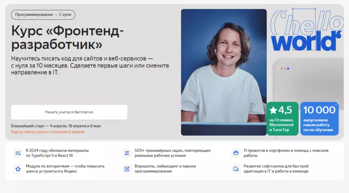 • Программа обновлена в 2024 году: материалы по React и TypeScript.