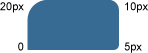 | div { border-radius: 20px 10px 5px 0; } | Последовательно устанавливает радиус левого верхнего уголка, правого верхнего, правого нижнего и левого нижнего. | ![]() |