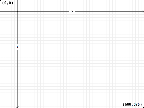 Холст это двумерная сетка. Координата 0,0 находится в левом верхнем углу холста. Вдоль оси X значения растут к правому краю холста. По оси Y значения растут к нижнему краю холста.
