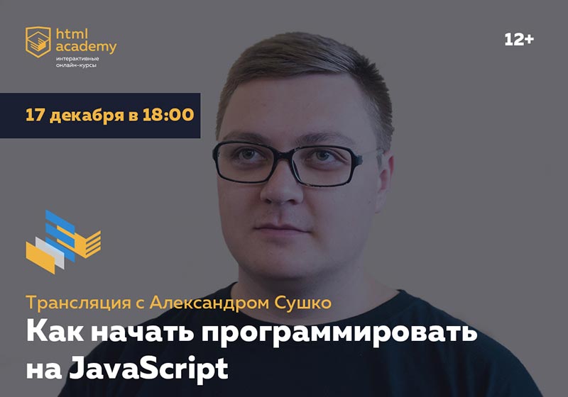 17 декабря в 18:00 по московскому времени преподаватель и автор курсов HTML Aсademy Александр Сушко в прямом эфире расскажет о новом потоке курса «JavaScript, уровень 1».