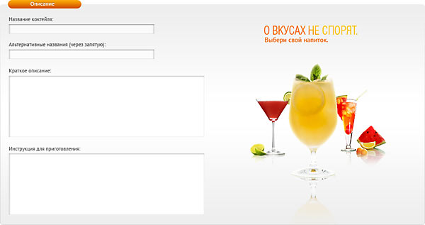 Сверстайте форму из PSD-файла для ввода коктейля.