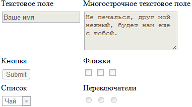 На рис. 1 представлены разные элементы форм в заблокированном состоянии.